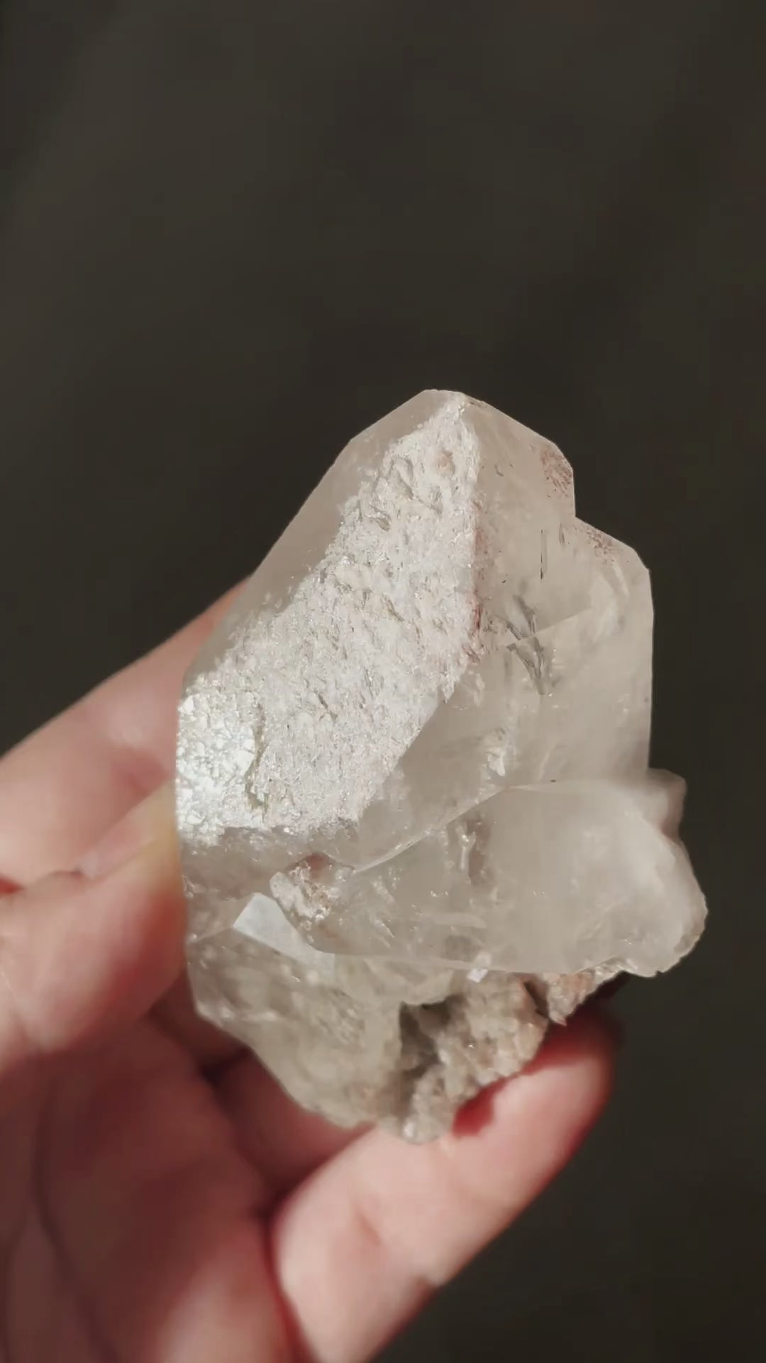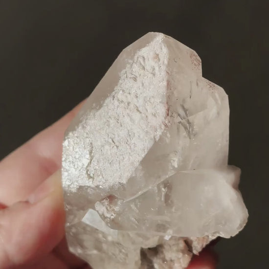 Cute specimen/cluster, with penetrating points at base, lodolite inclusions and self healing on main face.