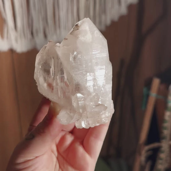 Quartz is definitely everywhere, making up almost 80% of the earths crust, it is her nervous system. One of the most overlooked yet most powerful stones to work with -- the colourless variety, is the most accessible to us. Clear Quartz is the best at remembering, and in turn, helping one remember their core essence and how we are all truly connected to everything. Within the markings, growth patterns, windows and faces, each Quartz crystal has a story to tell and a lesson to share, be that just for the user or the whole of humanity.