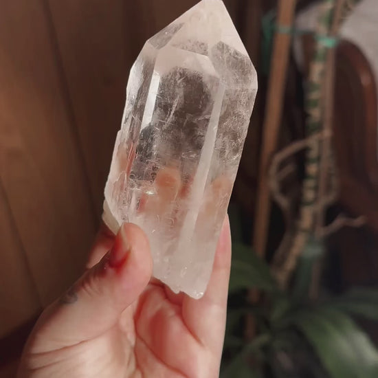 Quartz is definitely everywhere, making up almost 80% of the earths crust, it is her nervous system. One of the most overlooked yet most powerful stones to work with -- the colourless variety, is the most accessible to us. Clear Quartz is the best at remembering, and in turn, helping one remember their core essence and how we are all truly connected to everything. Within the markings, growth patterns, windows and faces, each Quartz crystal has a story to tell and a lesson to share, be that just for the user or the whole of humanity.