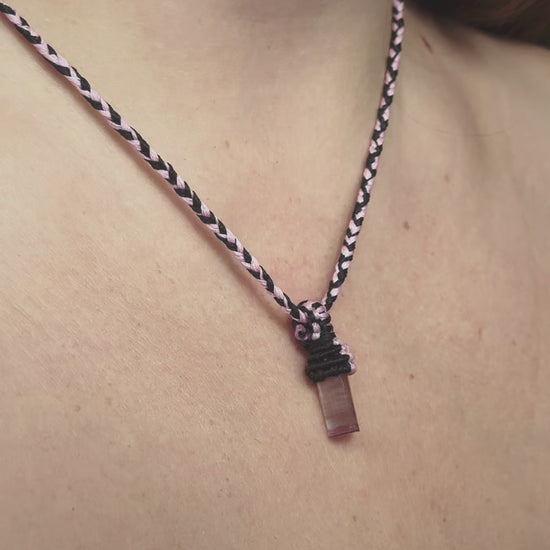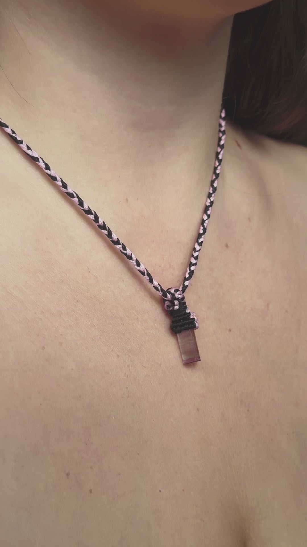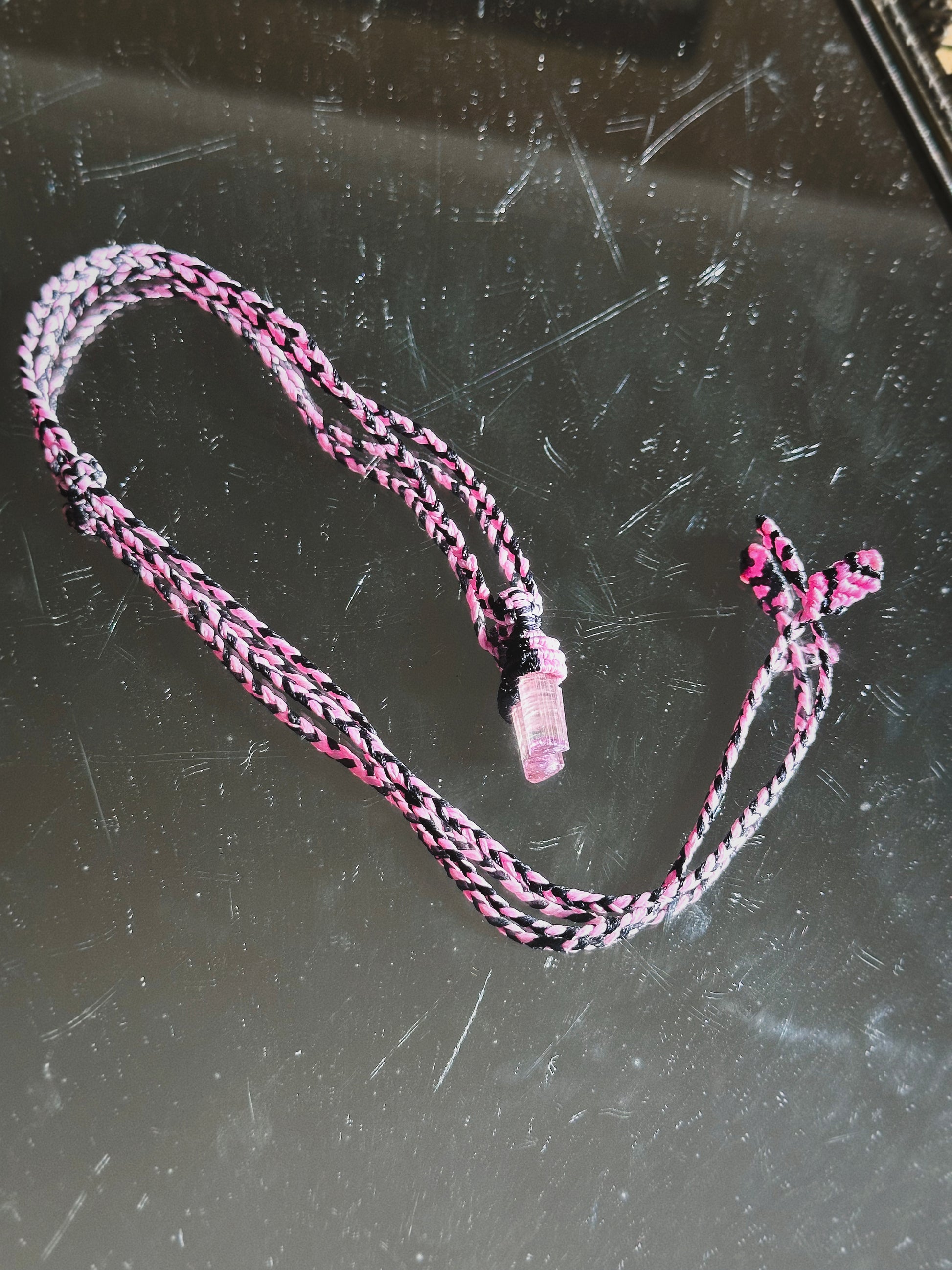 2 gram Pink/Watermelon Elbaite Tourmaline with Purple cap wrapped in black and hot pink thread.