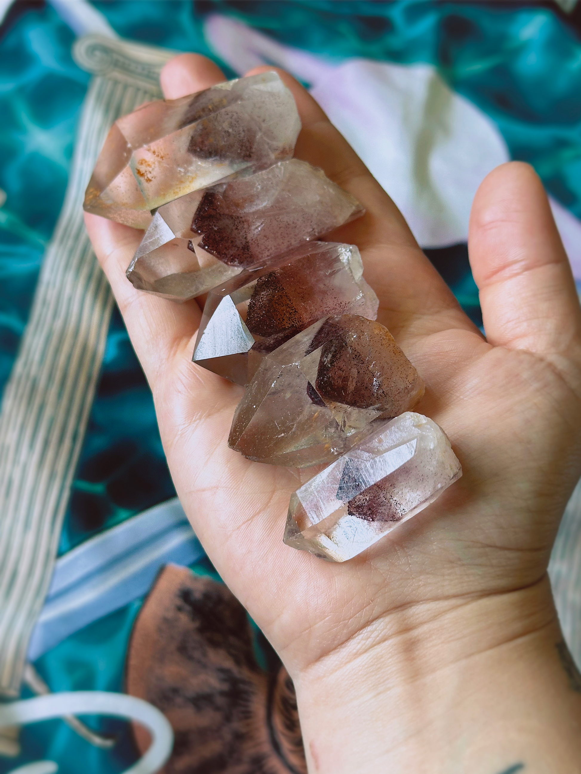 Red Phantom Quartz aids one in working through feelings of rage, anger and frustration. It is empowering to the point where one may be able to identify the cause of anger, which typically opens the door to inner child healing. Meditation with Red Phantom Quartz prompts one to project the strongest version of themselves into all avenues of life. A useful talisman for those who have endured bullying or who have suffered abandonment and being alienated, Red Phantom Quartz promotes courage and self esteem.