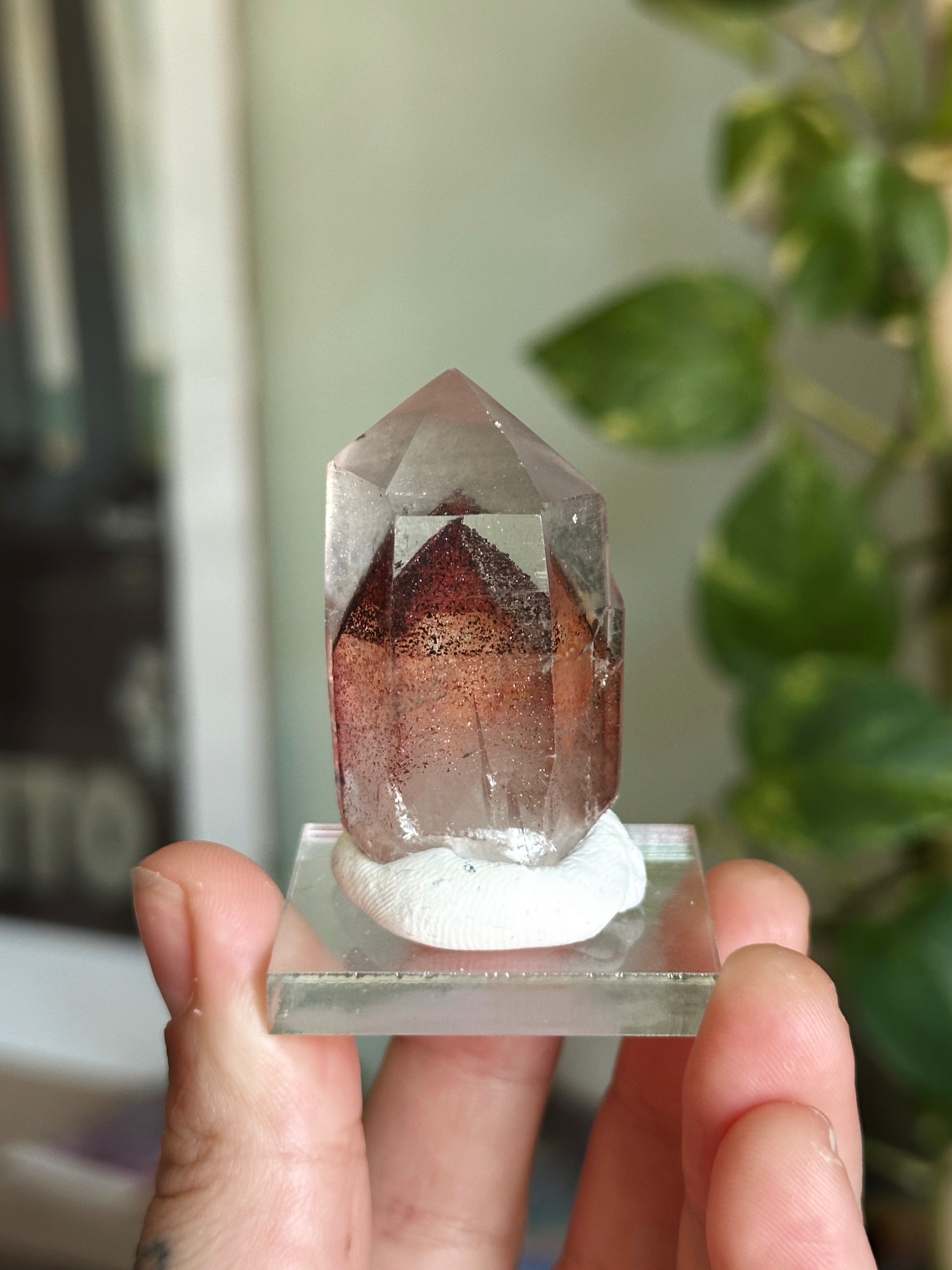 RARE - old stock crystals that were released onto the market in 2020. Red Phantom Quartz AKA Sunset Phantom Quartz display incredibly defined internal phantoms coated with Hematite, which is where the Red pigment comes from.