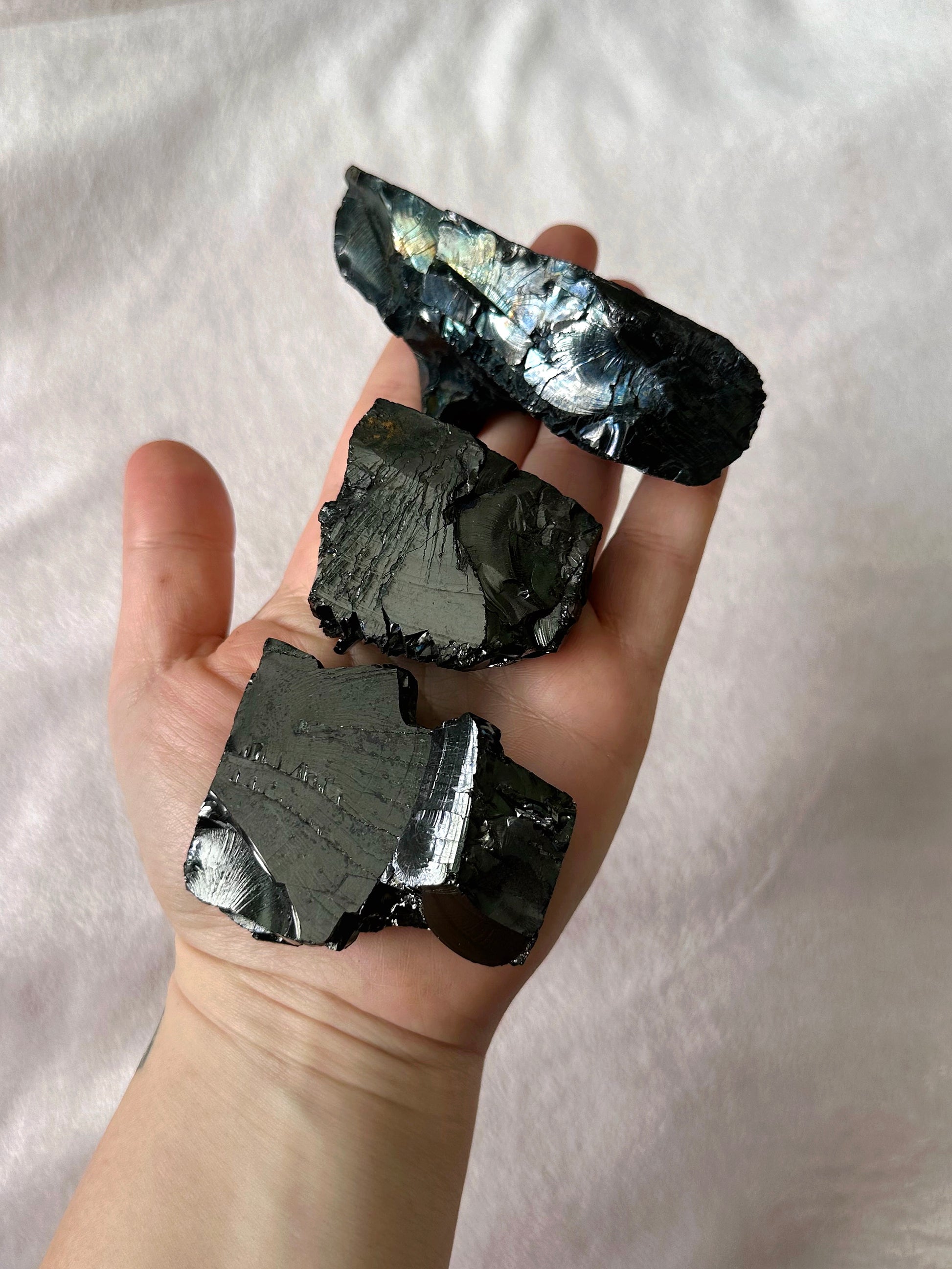 Shungite boosts physical and mental wellbeing and is extremely grounding. Being as old as it is, Shungite is excellent for ancestral and root work, and connecting to the lesser known ancient Sumerian deities. This stone is good for cellular metabolism, detoxification, lowering inflammation, burns, bruises, and is an ancient general cure all. Use as an elixir, and place around electrical devices to shield EMFs.